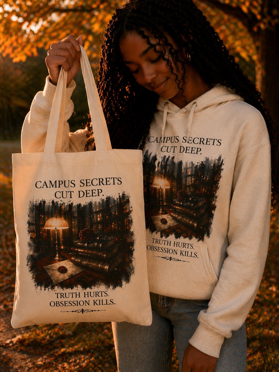 The Campus Secrets Tote Bag is made for your everyday life—whether you’re heading to class, the bookstore, a coffee shop, or just carrying your current reads everywhere you go. Designed with a moody, bookish aesthetic, this tote brings together style, function, and that “I’d rather be reading” energy.