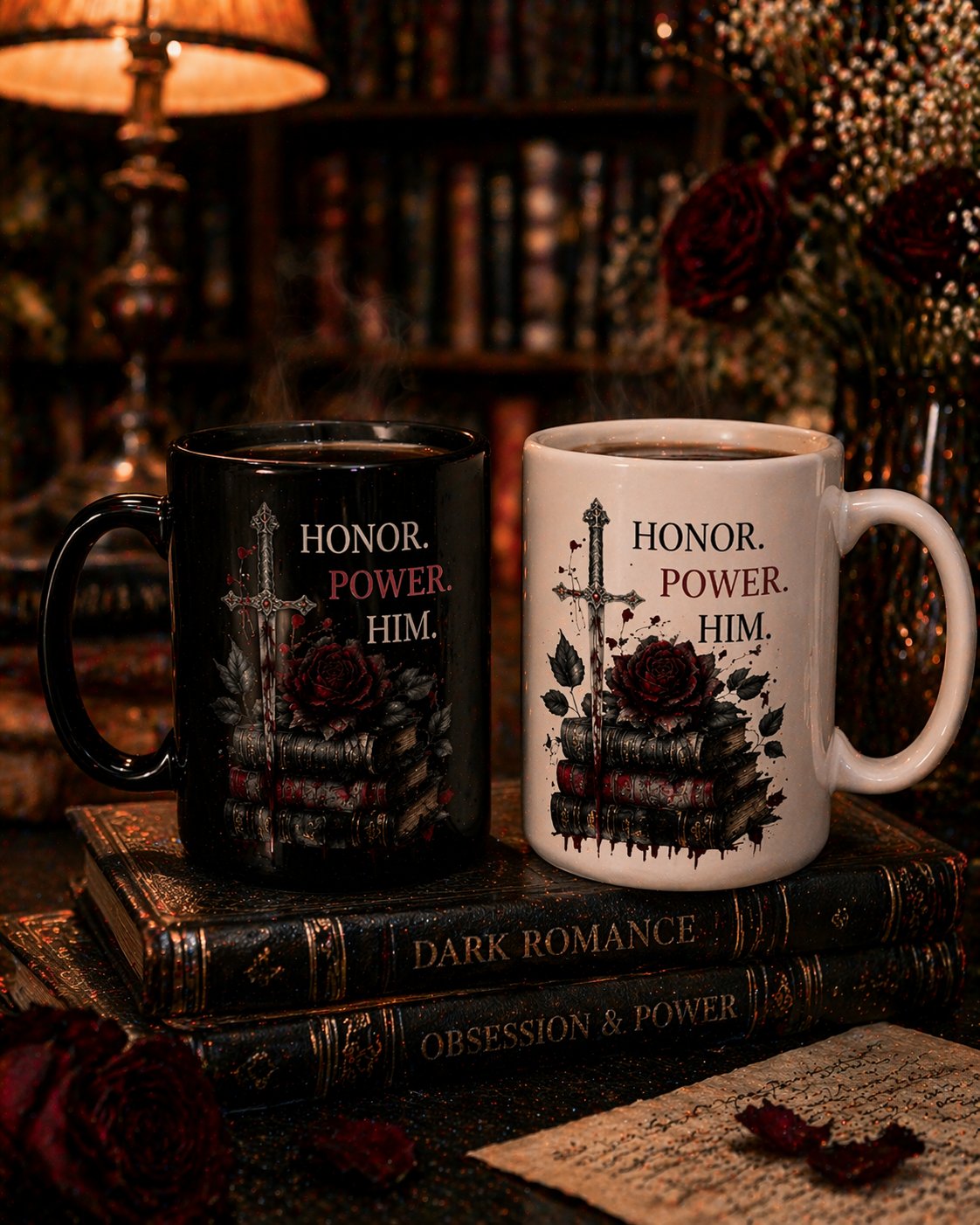 Featuring a striking dark romance graphic inspired by loyalty, power, and passion, this mug makes a statement whether you’re at your desk, deep into a book, or winding down for the night. Available in black or white, you can choose the look that fits your aesthetic.