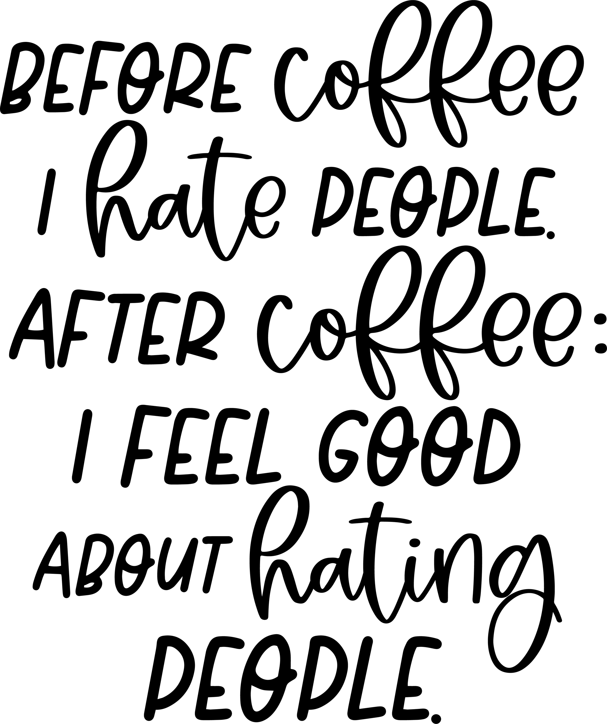 Start your morning with a little honesty and a lot of caffeine. The “Before Coffee I Hate People, After Coffee I Feel Good About Hating People” 15oz Mug is the perfect choice for coffee lovers who appreciate humor before their first cup. Whether you're powering through a busy morning, working from home, or enjoying a quiet moment in the kitchen, this bold and sarcastic mug makes every sip more entertaining.