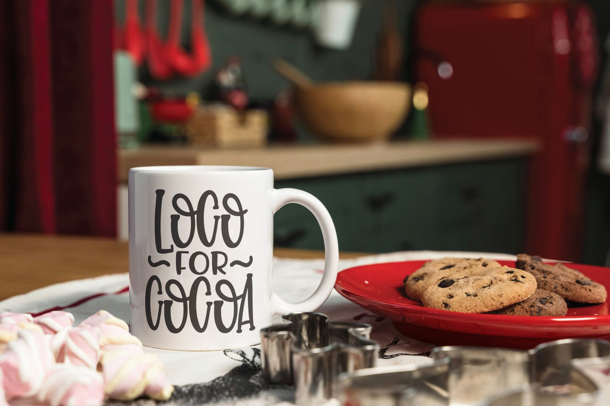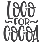 - Fun “Loco for Cocoa” hot chocolate design