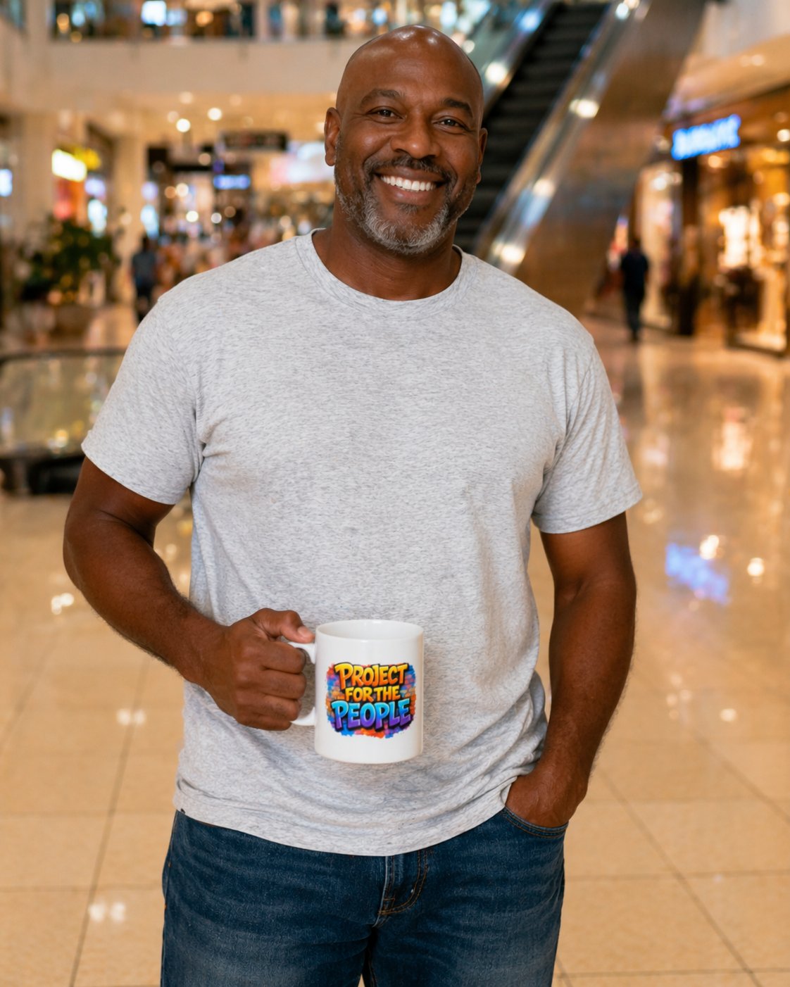 Start your day with intention using the Project For The People 15oz Mug—a powerful blend of everyday function and meaningful impact. Featuring a bold, colorful Project For The People design on one side and a scannable QR code on the other, this mug turns every sip into an opportunity to inspire awareness and action.