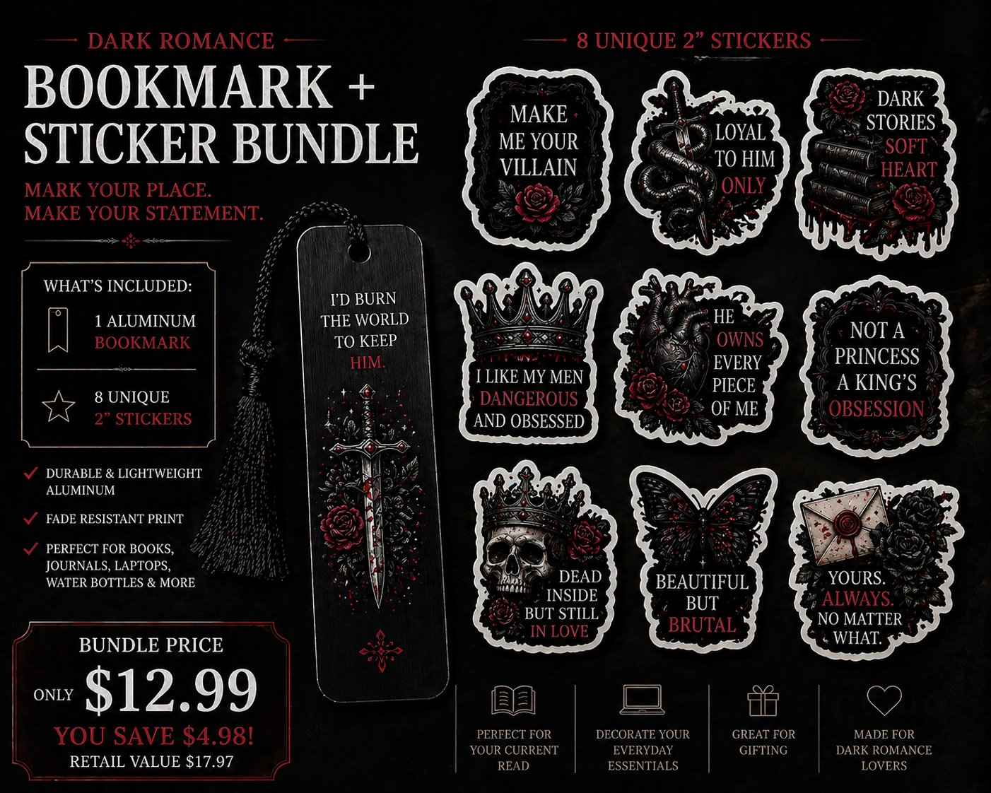 Aluminum Bookmark + Sticker Bundle 2 – Dark Romance Collection